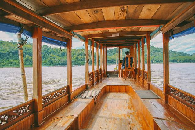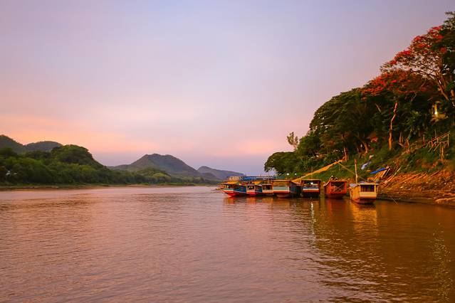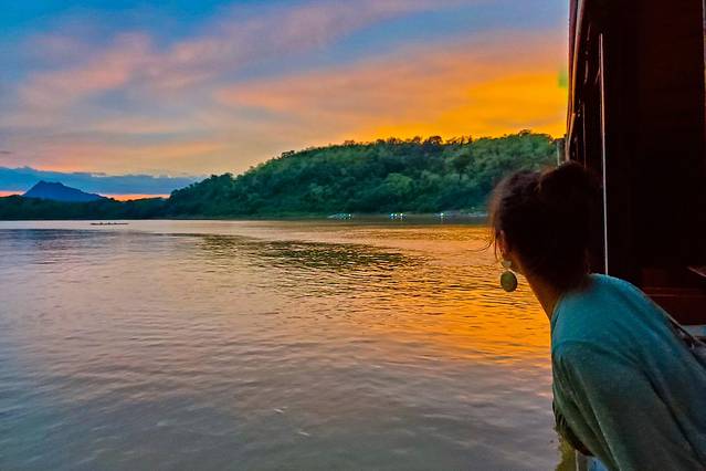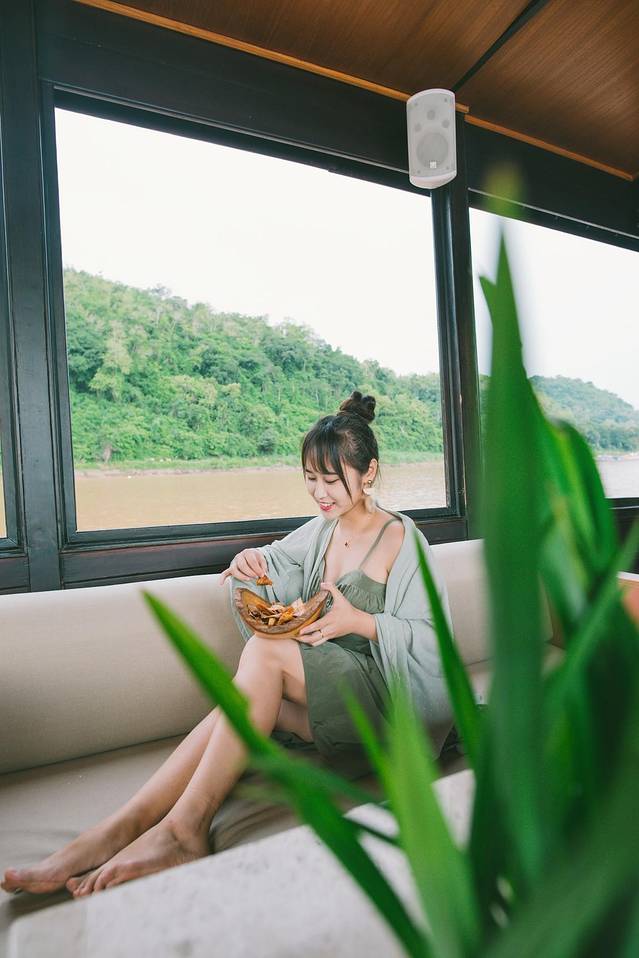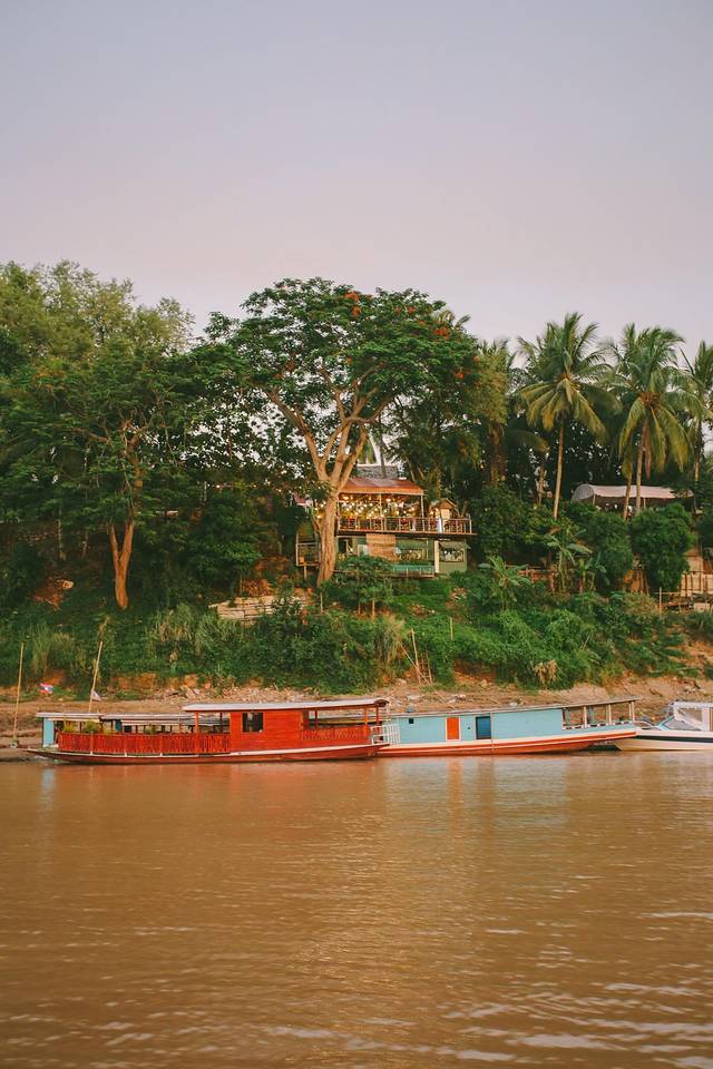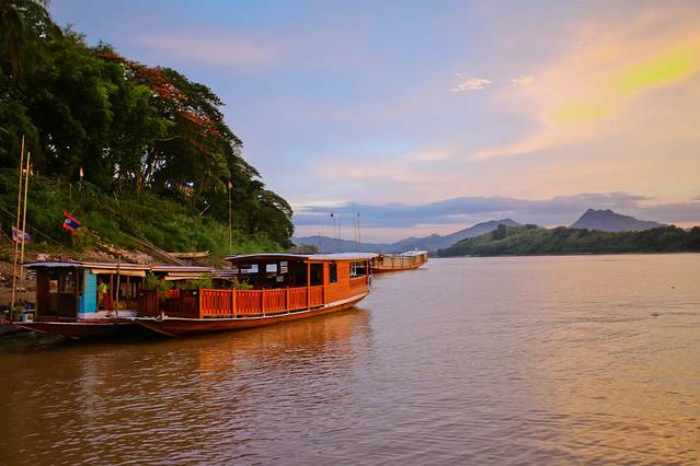 湄公河是老挝最重要的水路,而它一天之中最美的时刻莫过于日落,我们提前预订了船只,来一场湄公河日落巡游。