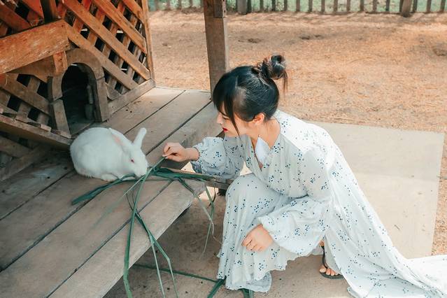 我先喂了当地猪猪,然后再喂一下法国小兔。