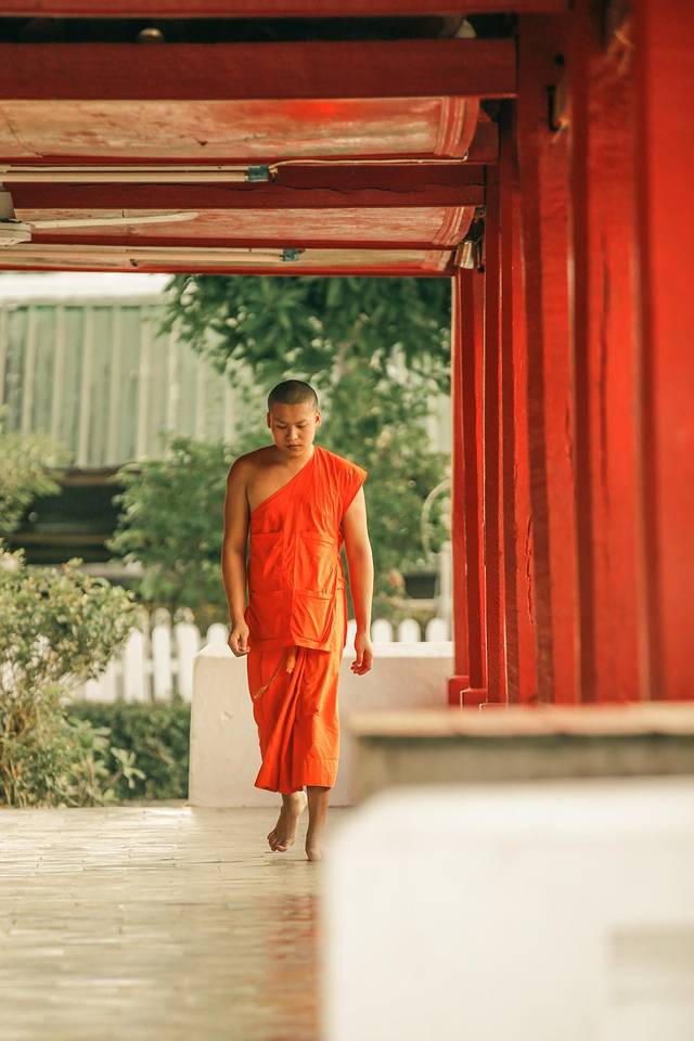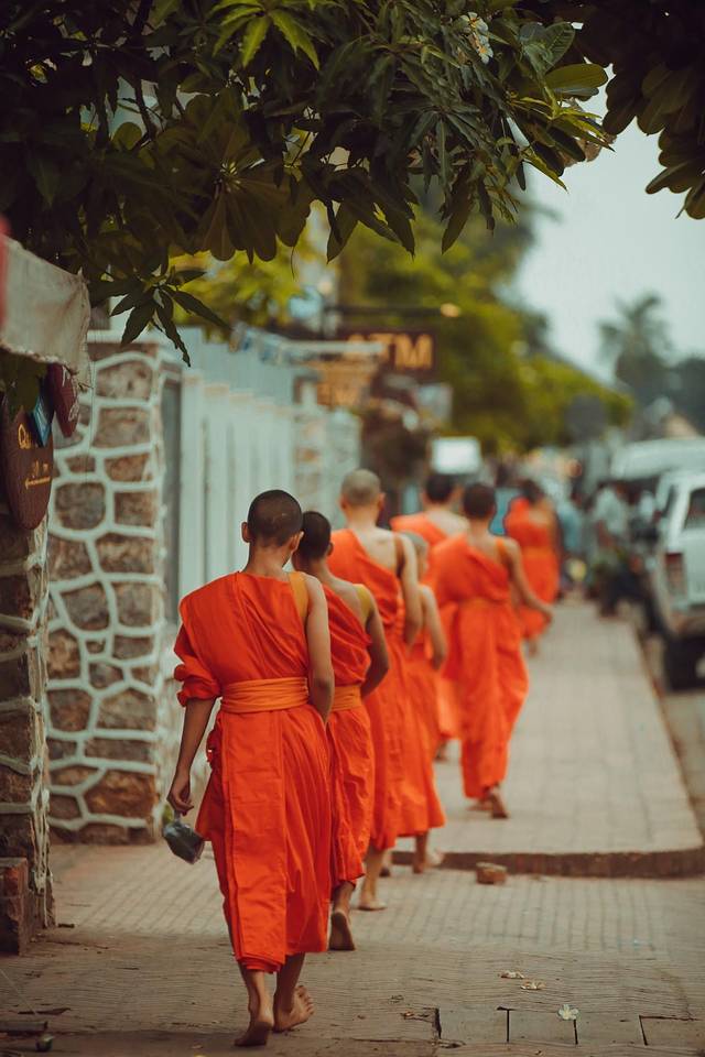 天色破晓之时,穿着橙黄色衣服的僧人便会排着队从寺庙中走出来,接受人们的布施。我是凌晨5点多就挣扎着起床了,可等我风风火火赶到酒店门口的时候,还是晚了,前台服务人员告知我第一波僧侣已经过去了,接下来还剩两波。