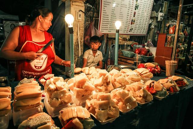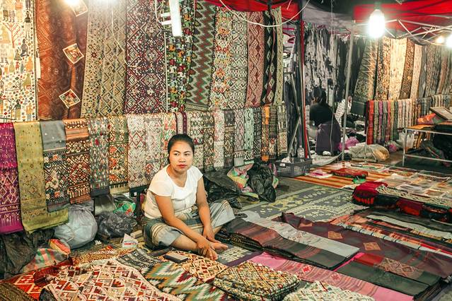 琅勃拉邦夜市就开在Sisavangvong大街中的一段,两头会有专门的政府工作人员设置隔离路障。即使不买东西,只是饭后闲逛,也真的值得误入深处。
