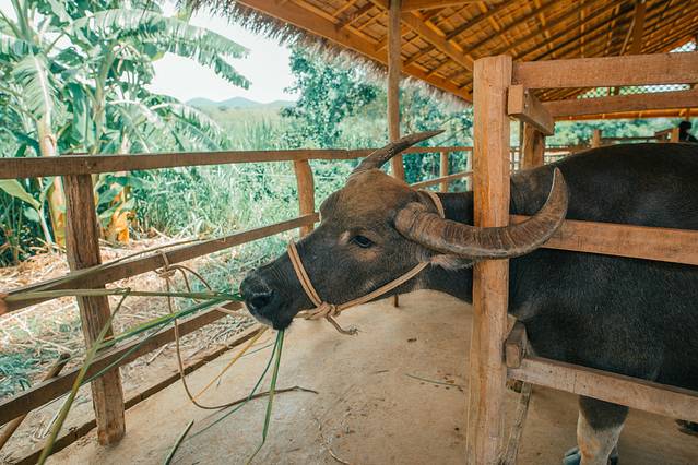 水牛农场Laos Buffalo Dairy,是琅勃拉邦乃至全老挝第一个、也是目前唯一一个以水牛为主题的农场。它就在从光西瀑布返回老城的路上,建议可以来瀑布的时候顺带一起去,刚好爬完瀑布累了以后来这儿吃点东西补充体力。