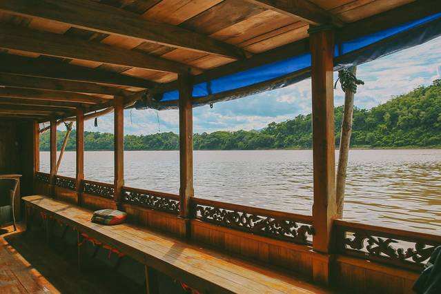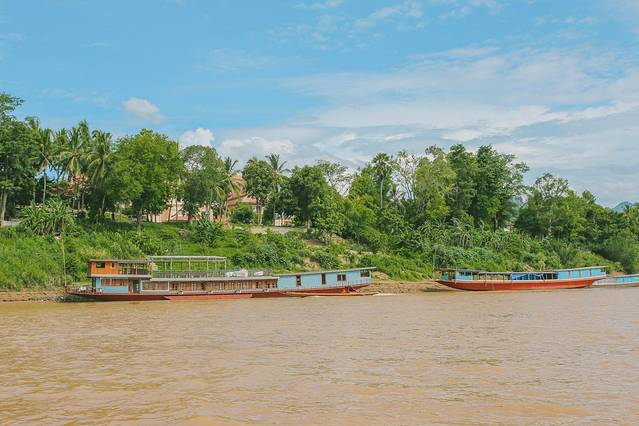 午餐过后,我们乘船前往帕塔克植物园,从湄公河岸边驶出大概要半小时左右到达。
