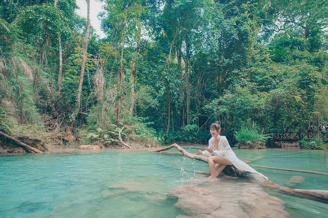 灿烂的阳光照耀下,青山绿树相伴,在清澈的山泉水中戏水,真是一种难得的享受,尤其是在像老挝这样比较炎热的热带国家。