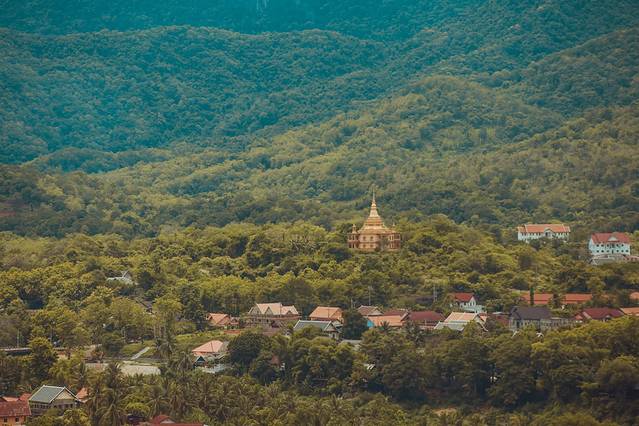 此刻站在山顶俯瞰古城全景,享受小城的平和宁静与佛教神韵。举目闲望,慢慢品味着琅勃拉邦赐予人们的无尽的恬静与和谐,没有丝毫焦灼,却能深入人心。