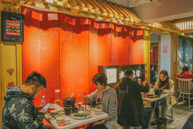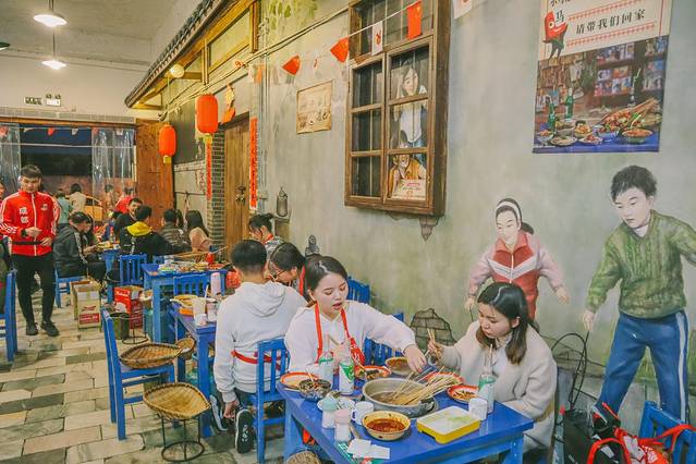 走进餐厅,店面环境依旧延续着当地的特色,宽窄巷子、春熙路、九眼桥、望平街、鹤鸣茶社……走廊墙壁上刻着一些地名,充满了老成都的味道。