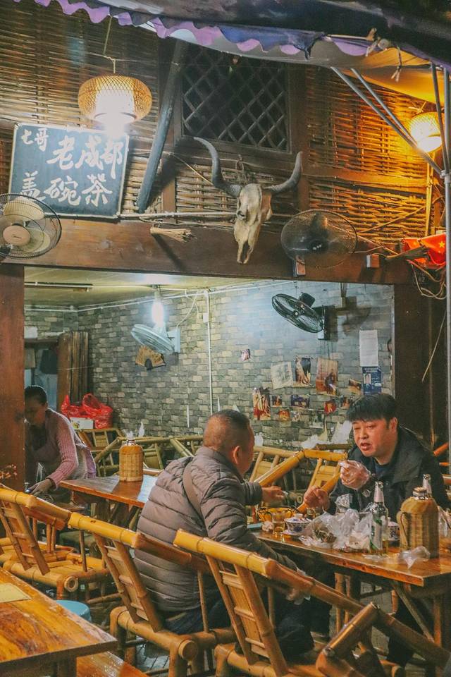许多当地人来到茶铺,泡一碗清香的盖碗茶,在竹椅上静静地坐一个下午,嗑着瓜子唠着嗑。