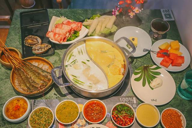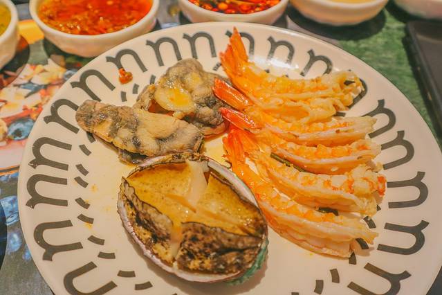 这家店,最大的亮点就是服务。全程都有服务生帮忙把各类菜品下锅,就连虾,都是煮好之后,剥好壳,去了虾线,才端上桌,真的是全程“懒人式”吃法,完全不用操心。而且每个菜品,服务生煮好后捞出来,会分类放在单独的盘子里,这样既能控制完美的火候,又不会串味,十分的贴心。