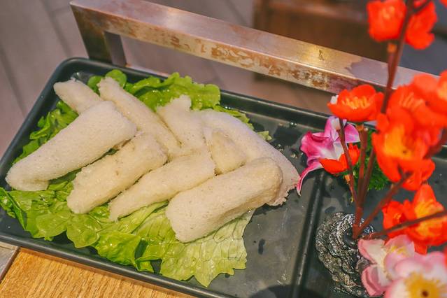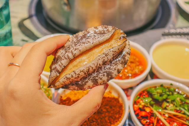 竹荪镶虾,在锅底中煮透之后,浸入了汤底汁水,柔嫩饱满,吃出浓浓的满足感。