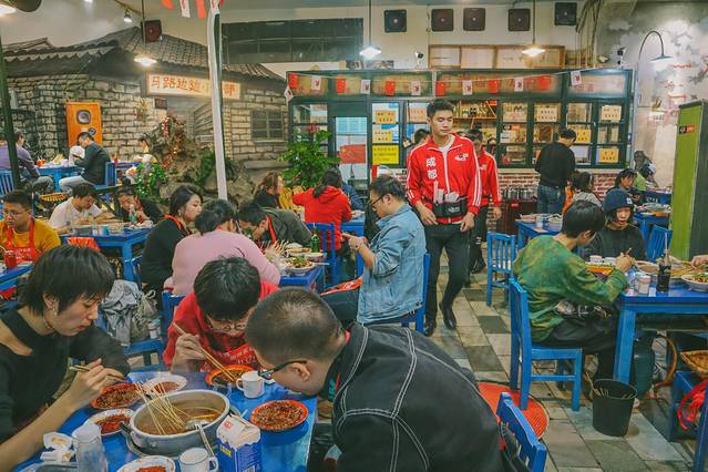 马路边边麻辣烫,成都的一家网红店,我去的时候已经晚上九点多了还下着雨,但马路边依旧是乌泱泱一片排排坐在等位的客人,生意好到爆。话说老板取的这个店名也是很接地气很随意了,难道就是因为开在马路边边吗哈哈?