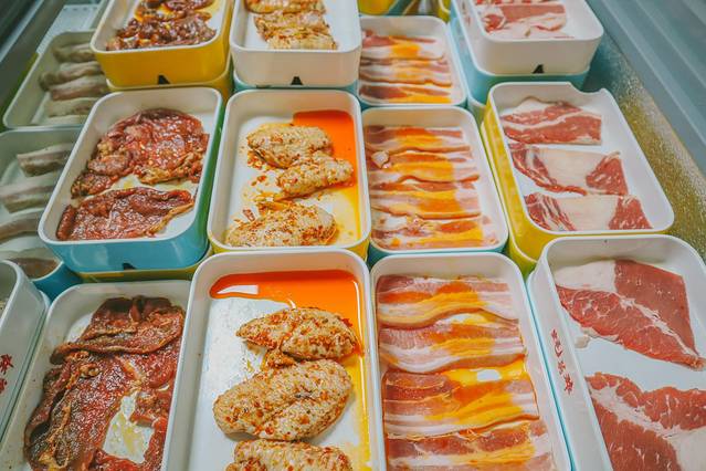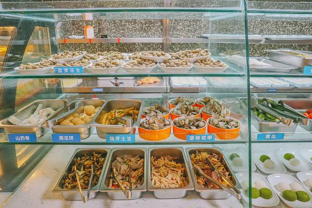 除此之外,还有其他区域很多丰富的菜品可供选择:海鲜区的扇贝与基围虾,荤菜区的厚切五花肉、精选排骨、新鲜牛肉、脑花等等,素菜区的生菜、洋葱、馒头片,以及各类凉菜与点心,所有的菜品都不限量!