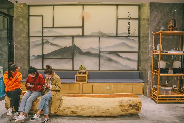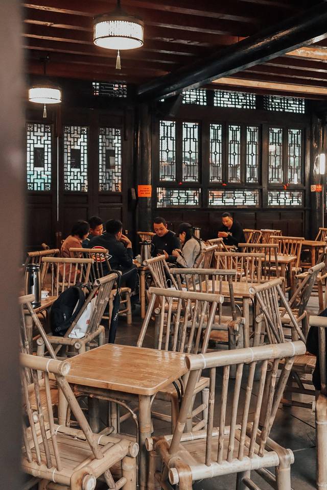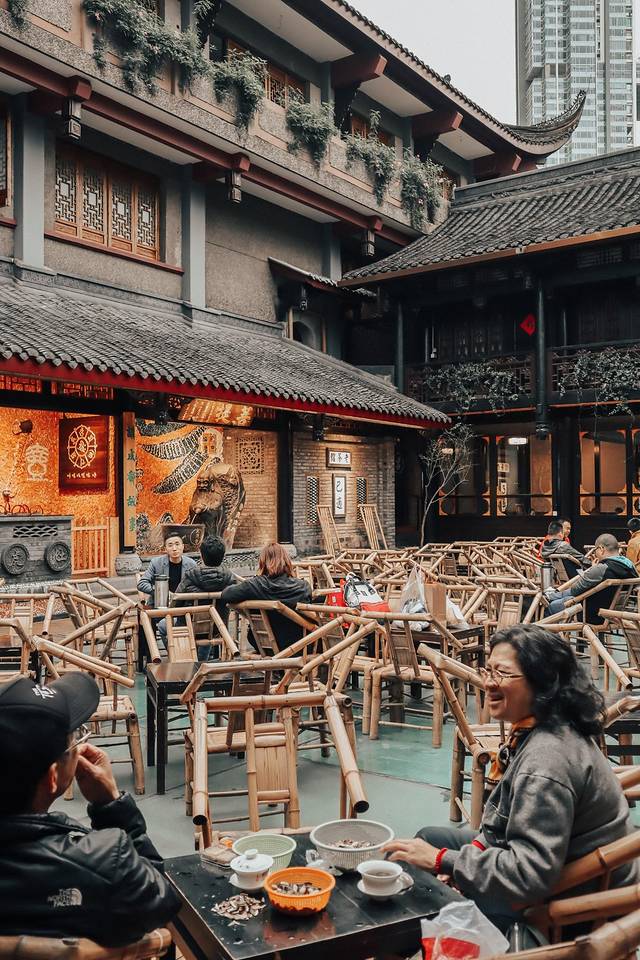 不得不说这里是隐于闹市中的一方净土,四周就是繁华的商业街区远洋太古里,现代化的高楼大厦与老茶馆的灰色瓦片形成鲜明的对比。
