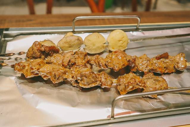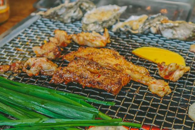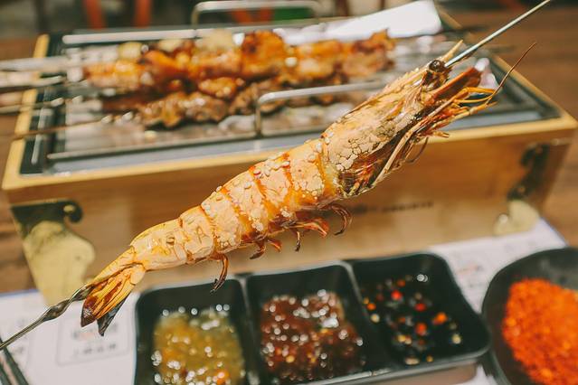 烤猪排、烤牛肉、烤羊小排,烤泰国虎虾,烤秘制的肥瘦相间五花肉串,所有的都好吃不腻。还有口蘑也非常嫩、不会烤得很干。