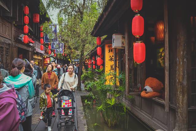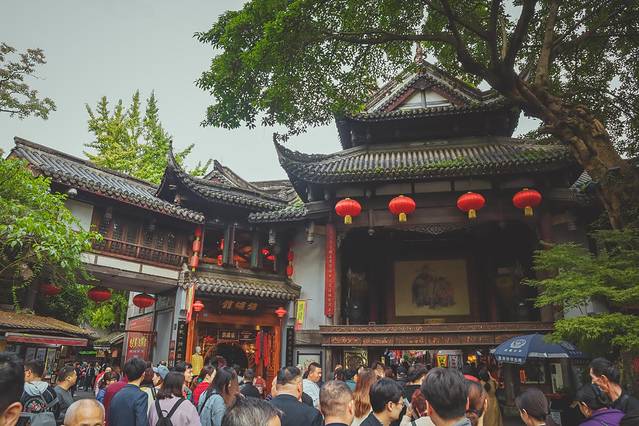宽窄巷子中,宽巷子是有着老脸庞的成都怀旧地带,是老成都生活的再现。