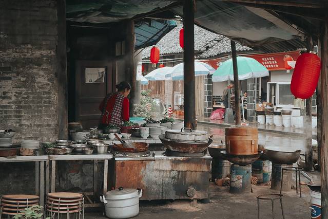 街道两旁的餐馆飘出烟火的味道,老板们正吆喝着招徕来往的过客,市井的气息充斥在每一个角落。
