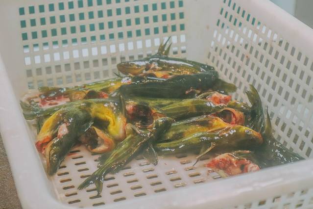 从餐厅门口就能看到一个个玻璃箱,里头是各个品种的鱼,大家可以根据自己的喜好选择,亲眼看到新鲜的活鱼被捞出、现场处理再上桌的过程。从挑选到上桌,不到半小时,新鲜的口感能得到最好的保留。