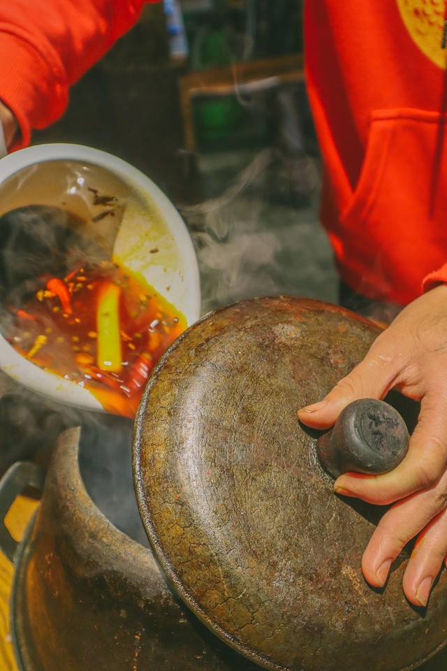 然后,再把滚烫的火锅底汤倒入石锅,将鱼肉烫熟至食用。鱼肉在短时间内被迅速烫熟,既锁住了鱼肉的鲜嫩多汁,又保留了火锅的独特味道。