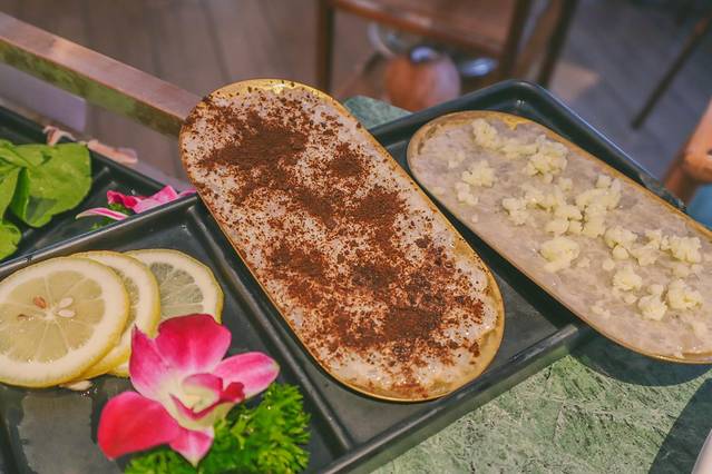 我点了双拼的锅底,一边是冬阴功汤锅底,一边是椰香锅底,两个都很好吃,个人更偏爱椰香锅。蘸碟味道也超级多:招牌柠檬薄荷、经典传统泰式、秘制川香小米辣、香辣海鲜、鲜香椒麻、浓香花生酱,川香干碟。