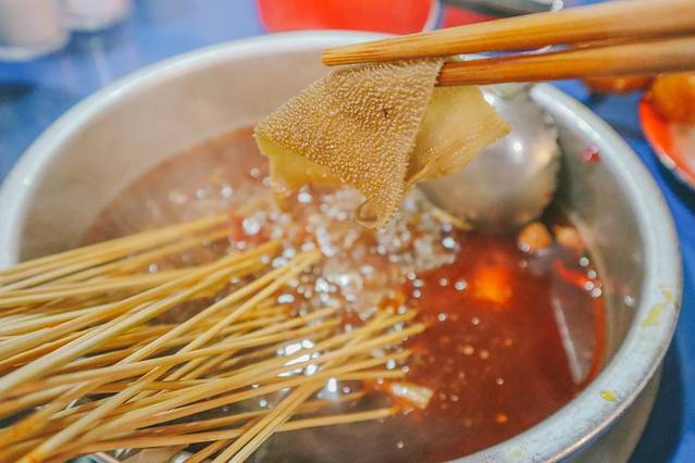毛肚和鹅肠是火锅必备,烫的时候记住七上八下原则就好,入口香辣脆爽。