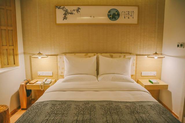这次我住的是建国璞隐酒店,首旅如家集团旗下的。酒店新开不久,设施都很新,设计风格我很喜欢,原竹实木的家具,像是在拥挤的城市最中间,开辟出一隅躲开繁杂喧闹、调养身心的隐逸空间,和成都慢生活的调调很相符。