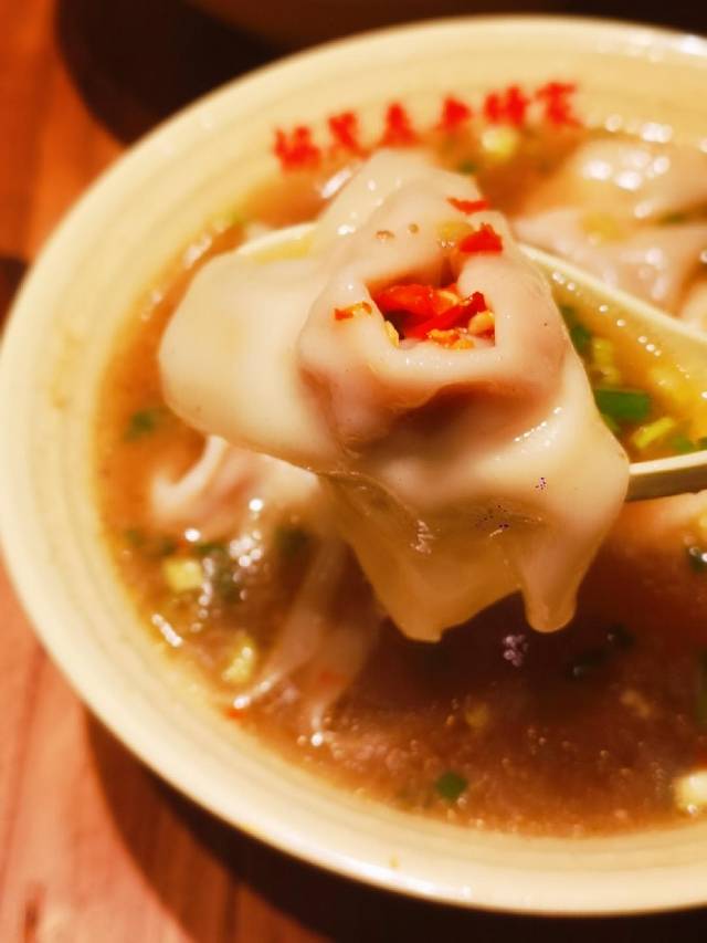 鲜椒抄手是他们家的特色,馅儿大皮薄,两种颜色的辣椒,吃起来清清爽爽,还有一点点辣。