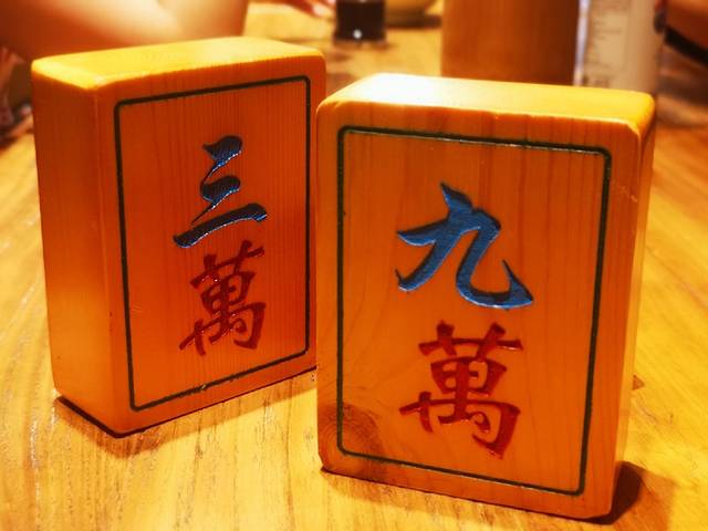 取号牌做成了麻将的样子,大小跟砖头差不多大,小和尚去其他家是跟真麻将一个材质的,这家是用木头做的材质,非常有趣。