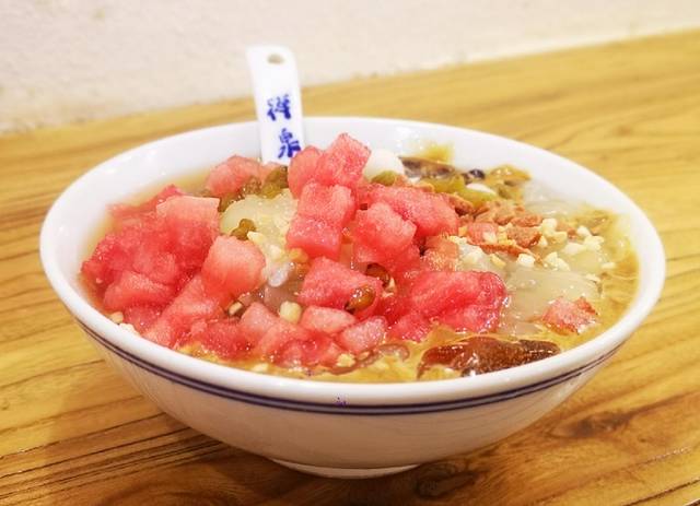 还有西瓜冰粉,有西瓜在里面,冰粉是手工的,可以看得到里面的小气泡。
