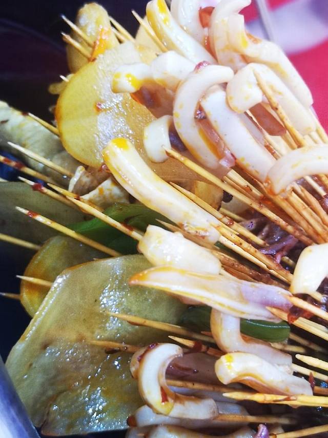 【串串香】串串香是自选,荤素有很多种,可以选择,推荐牛肉,鱿鱼和小郡肝。