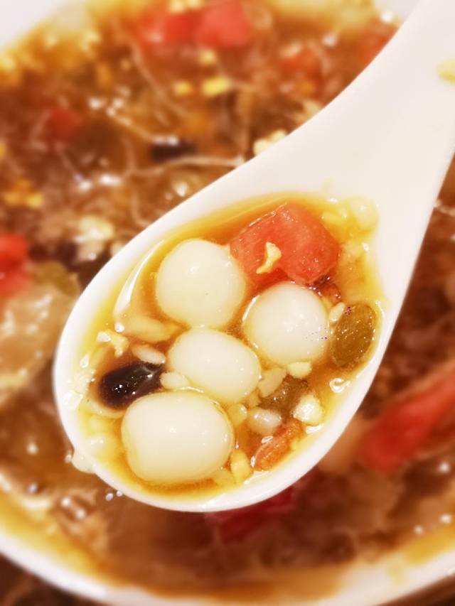 特色禅泉冰粉才八元钱一碗,就是三鲜冰粉,里面有醪糟小汤圆,吃起来清清凉凉的。