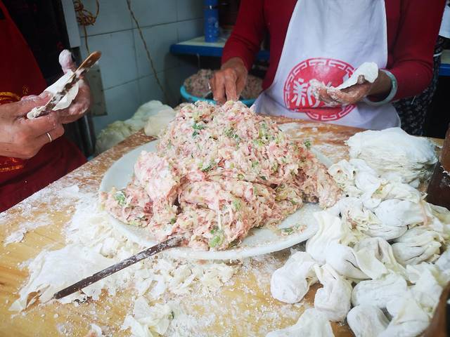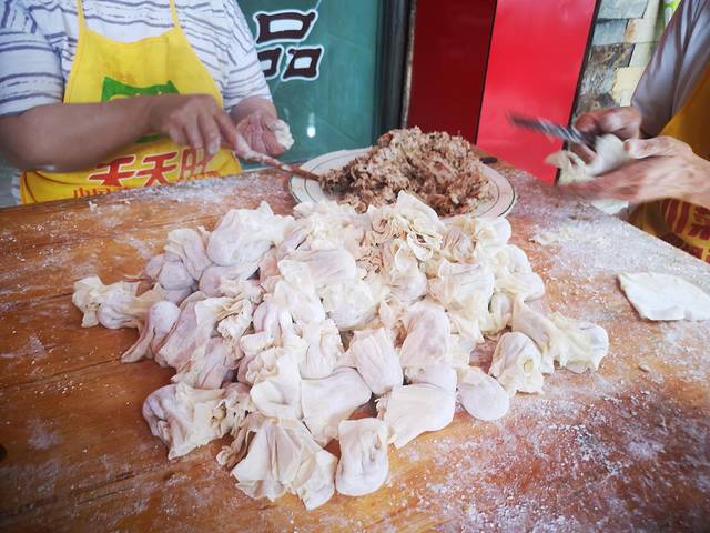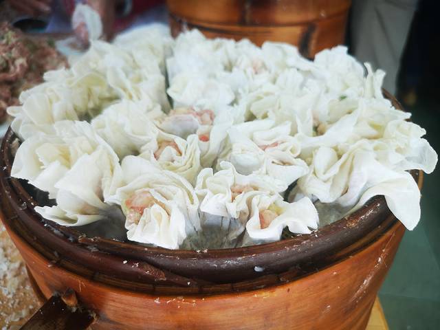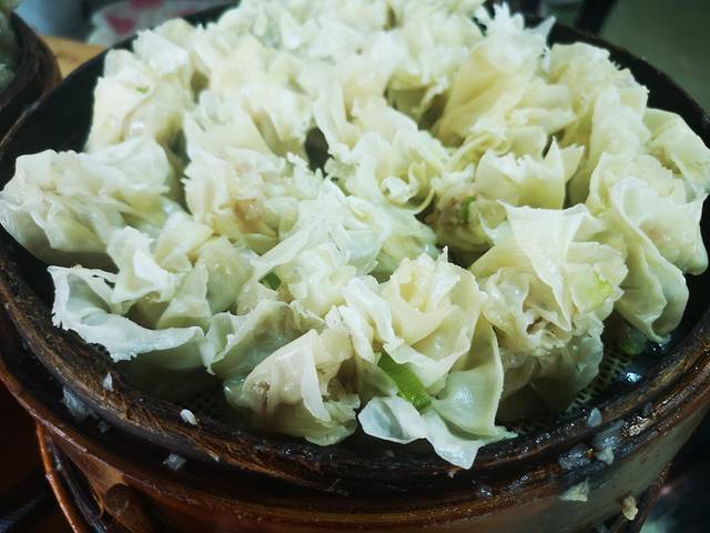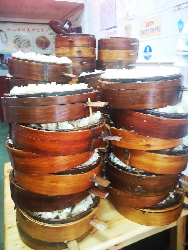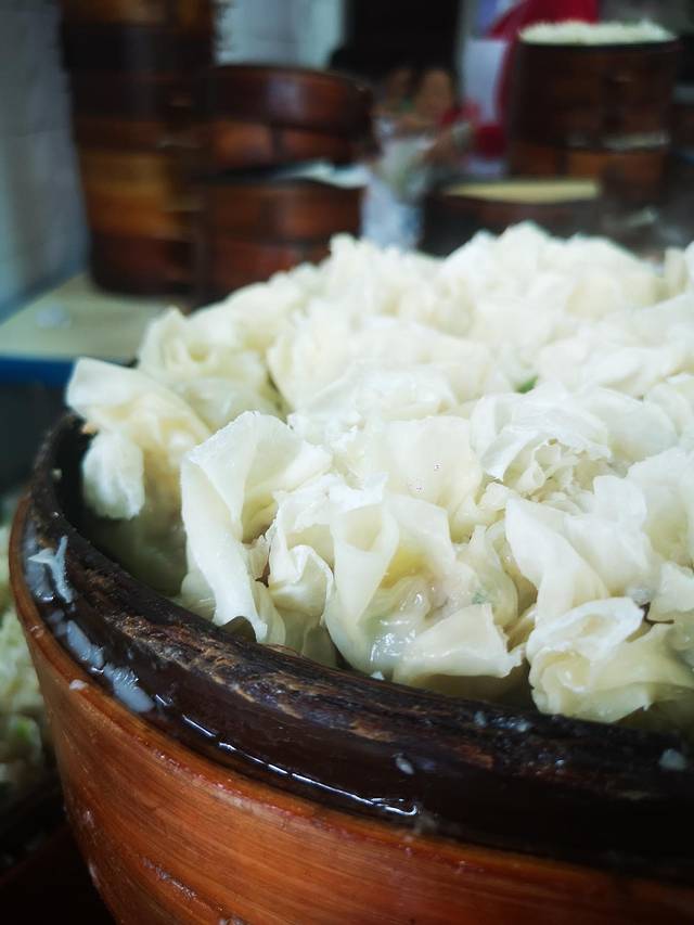 在乐山逛吃逛吃了一整天,路过这家店,看到好多人在买,现场包饺子和烧麦,现场蒸,热气腾腾,蒸熟的放在一边堆起了高山,一会儿就卖完了。