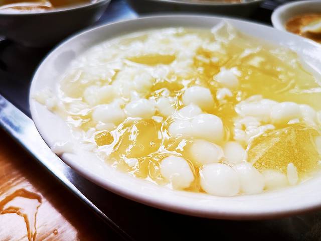 纯手工冰粉,比较结实,有小气泡,醪糟比较香,淡淡的酒香,甜甜的,还有糯米小圆子,弹弹的,好吃,清爽。