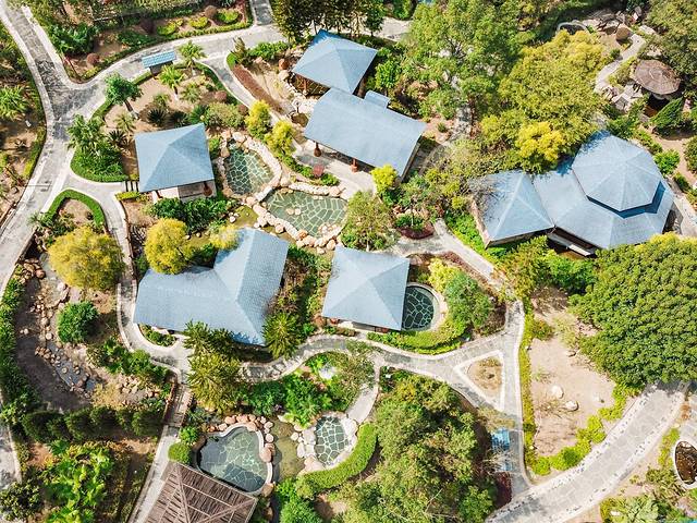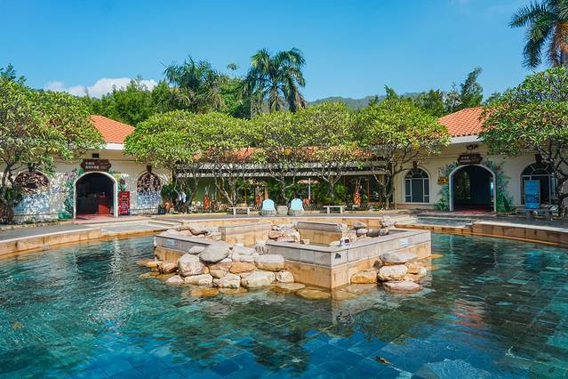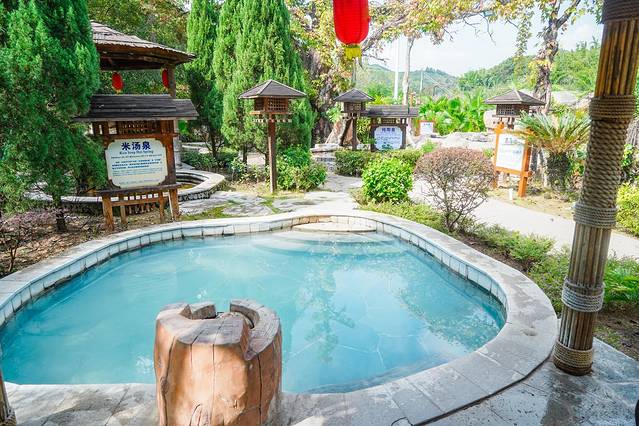 我们比较喜欢这里多样的功能温泉汤池,白色的米汤泉,红色的红花泉,黄色的生姜泉,绿色的客家艾泉,还有首乌泉,檀香泉,牡荆池等,种类十分丰富,从祛风解表到益气强心,从提神醒脑到滋润肌肤,都展示了客家药材与叶园温泉的混搭功效。