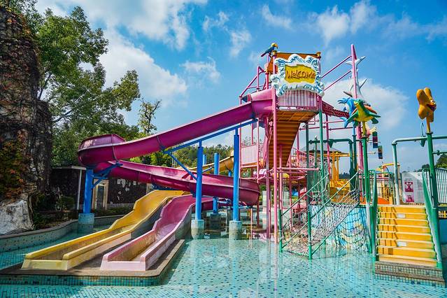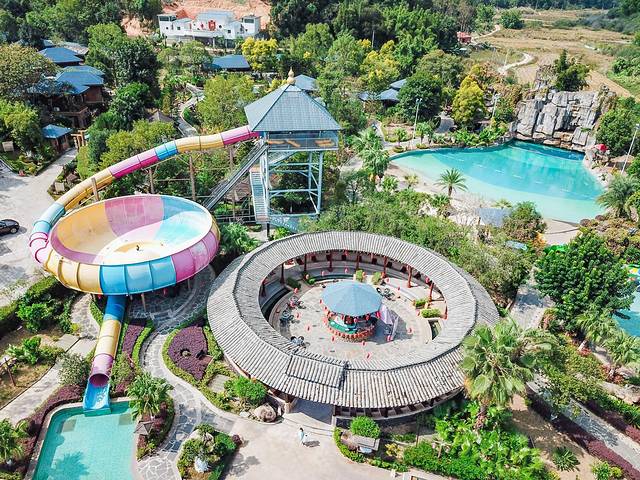 这个度假区就在巴伐利亚庄园旁边,自驾9分钟就可以到达。度假区主要有水晶氡温泉,醉蝶谷绿色庄园,还有恐龙探险乐园,客家小镇等景点,非常适合一家大小来度假。