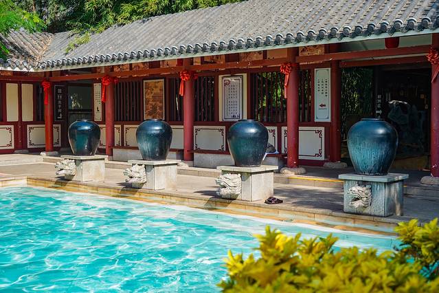 这个温泉度假区距市区大概45分钟车程,整个景区以“客家·生态温泉”为主题,有着充满客家风情的传统围屋,以及功能多样的温泉汤池,其中包含了动、静spa水疗区、山洞文化、旋涡池、冲浪池、客家围、儿童游乐区、别墅温泉区、游泳池等项目。