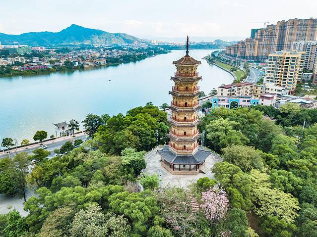 河源恐龙文博园包括河源市博物馆、恐龙博物馆和龟峰塔。