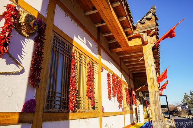 来到金达莱村,首先映入眼帘的是村口独具特色的门楼,穿过门楼后豁然敞亮,村内街巷整洁干净,两旁都是极具朝鲜族特色的民居和建筑,让人颇有几分身处异域之感。