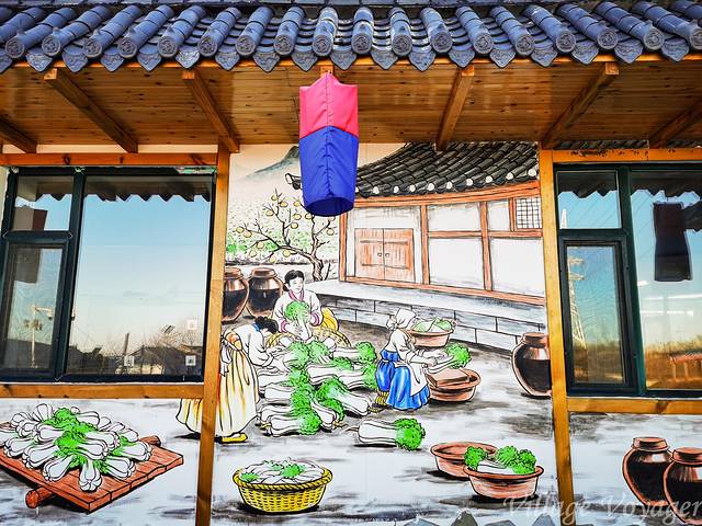 在金达莱村的地窖辣白菜基地,可以欣赏到辣白菜的制作过程,在地窖口还有一座巨型白菜雕塑,据说是全亚洲最大的白菜雕塑。