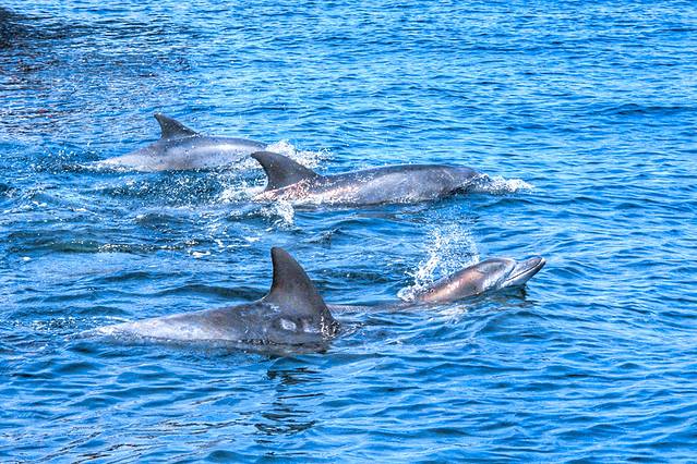 岛原半岛与天草之间的海域栖息着约2百头海豚。在这里,一年中无论哪个季节,都有极高的概率与海豚邂逅!乘上船,便可以在非常近的距离欣赏海豚们的曼妙身姿。需要注意的是,这里的海豚都是野生的,观赏和接近时,不能喂食哦!