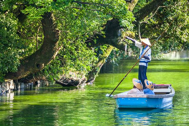 在西铁柳川站步行约5-10分钟的地方,有4处柳川泛舟体验的乘船点。