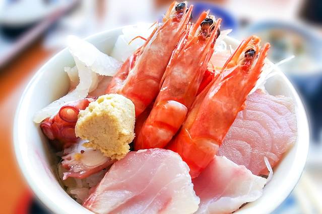 下山后乘坐路面电车到达出岛站,来到了出岛WHARF的海鲜市场长崎港品尝了非常新鲜的海鲜盖饭。来到了日本的海边,当然要多吃点刺身。如果接受不了刺身的话,还可以选天妇罗料理之类的美食。