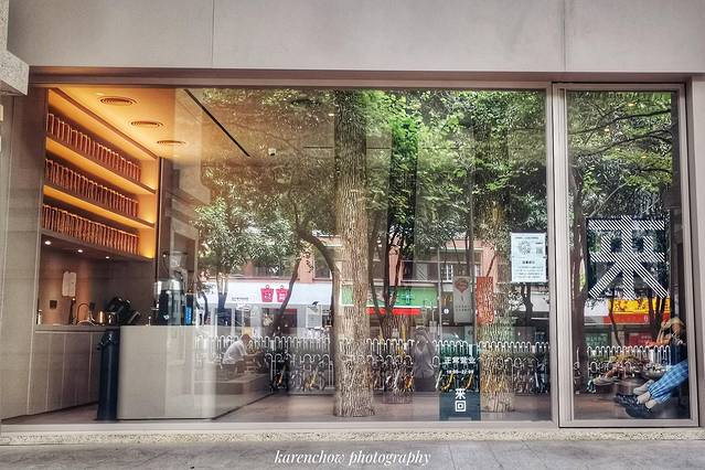 木质门面与透亮的玻璃,也有一种虽然身处闹市,却更贴近大自然的朴实感!哎,我实在太喜欢这种调调了。