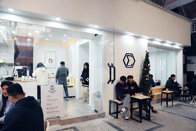 看门面,几扇透明的落地玻璃结构了整个咖啡店,漂亮的几何拼图,拥有属于自己的绝佳调调。