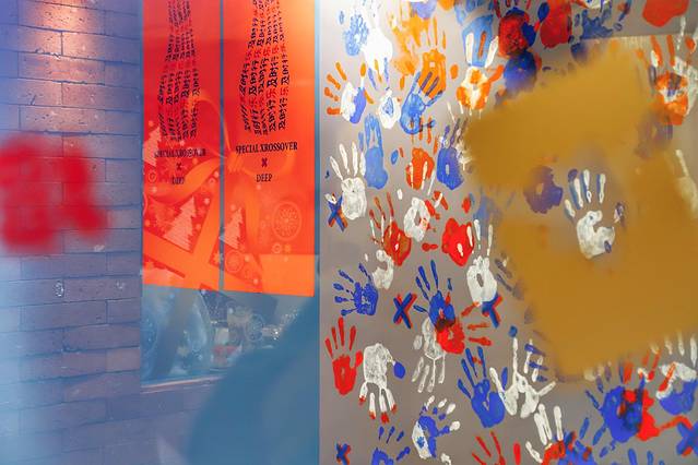 店子的装修还是花了些心思的,小而精致,以红蓝为主调,特别欣赏墙壁上的红白蓝三色手印,这个色彩组合真的是不能再红火了~
