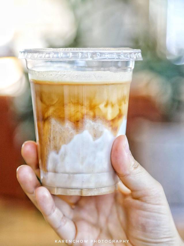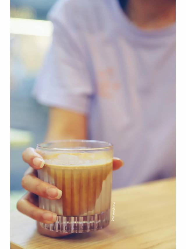 他家的牛奶咖啡是业界首推,所以我们点了两杯,一冷一热,我的是热的,口味相当浓郁,不苦不酸,口感平衡,奶泡绵密持久,喝到最后拉花仍在,确实非常不错,推荐尝试。