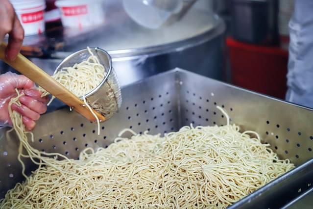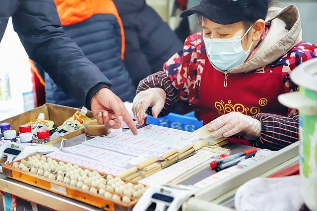 先埋单,再拿着小票去排队,脆皮烧卖和油饼包烧卖是一条队,武汉热干面和蛋酒是另外一条