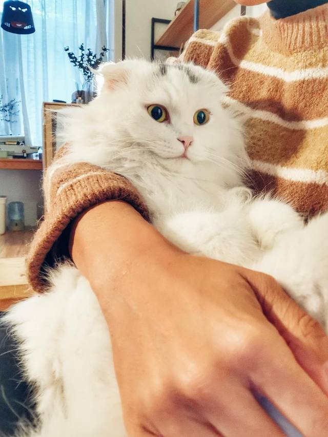 虽然花色不是典型的布偶,但是有着布偶的性格和软糯的身体,相对大只也很胖,亲人得萌出我们一脸血。