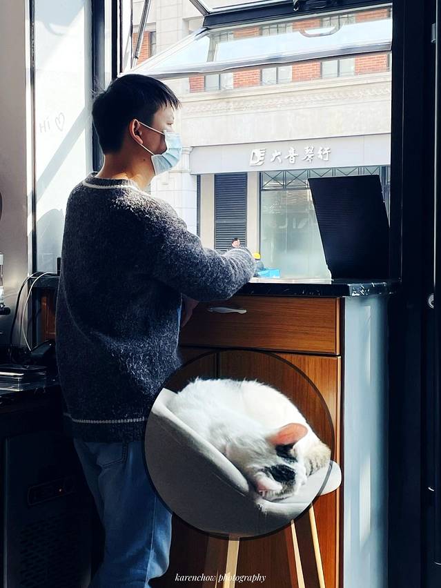 店主小哥哥很安静,服务也很好,自己的位置给猫睡觉了,他则默默地站着,像是守护着他,爱猫的男生,都加分。