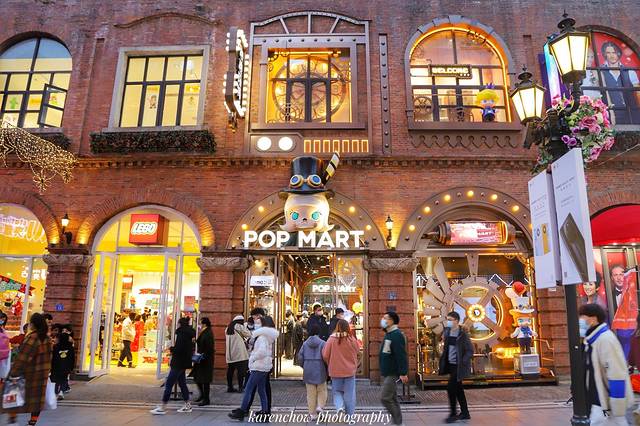 到了夜晚灯火通明,路上行人熙熙攘攘,一些店子(如年轻人喜爱的POP MART)甚至被挤得水泄不通~