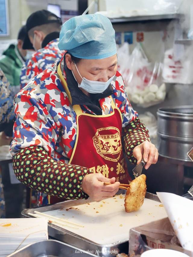 在往油饼里面夹烧麦