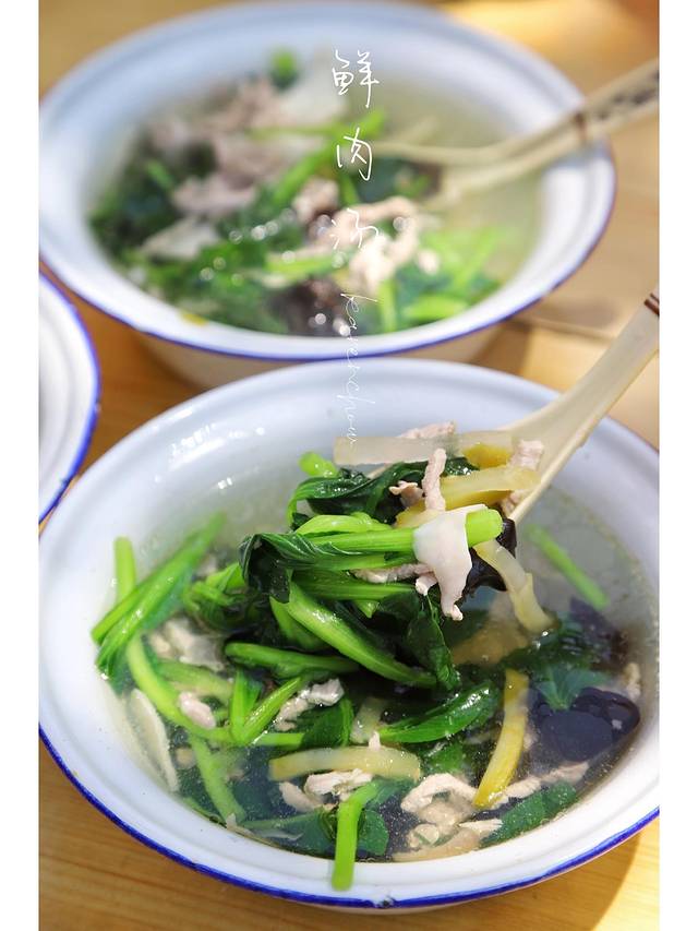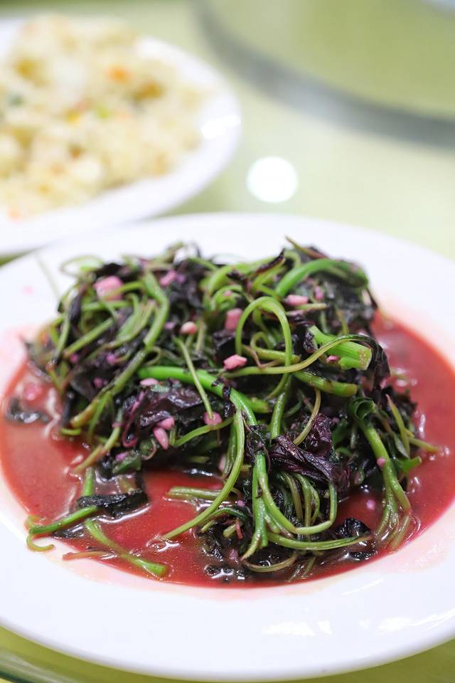 我最喜欢的竟然是这个:凉拌萝卜苗,味道和心里美萝卜一毛一样,有点冲,不能吃多,吃多会辣得胃疼,但我很喜欢。