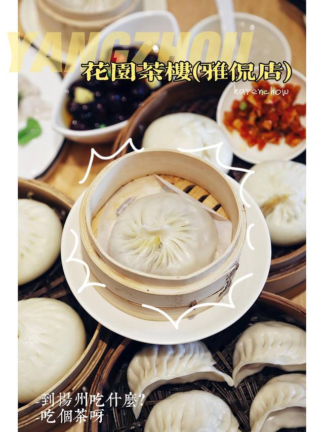 作为一名广州人,对茶点自然毫无抵抗力,况且吃茶是扬州必体验项目,虽然我们最后也没有能去成有名的趣园、冶春茶楼等,因为查了很多攻略都说超多人排队,让我们六点去到排队绝不可能,所以退而求其次,找了这家地理位置相对偏远的花园茶楼(在当地也有一定的口碑)。